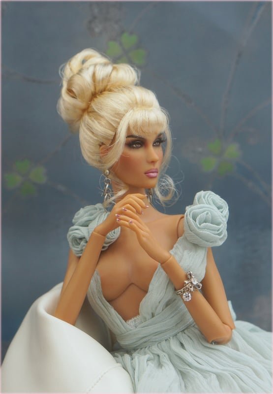 This updo hairstyle wig is made with saran hair on a hard cap. The color is pale blond mix. This wig is for small size girl dolls (15-17"). You can offer the color that you prefer if you dislike those colors as shown in the pictures. You can check more details of the doll size at "size available"