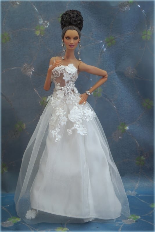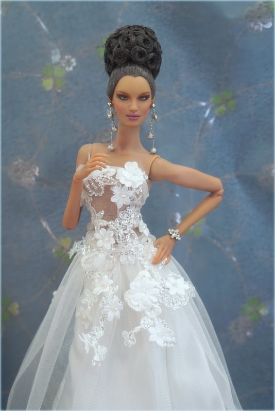 It has a cool corset bodice decorated all over with tiny, elegant beads and floral designs.