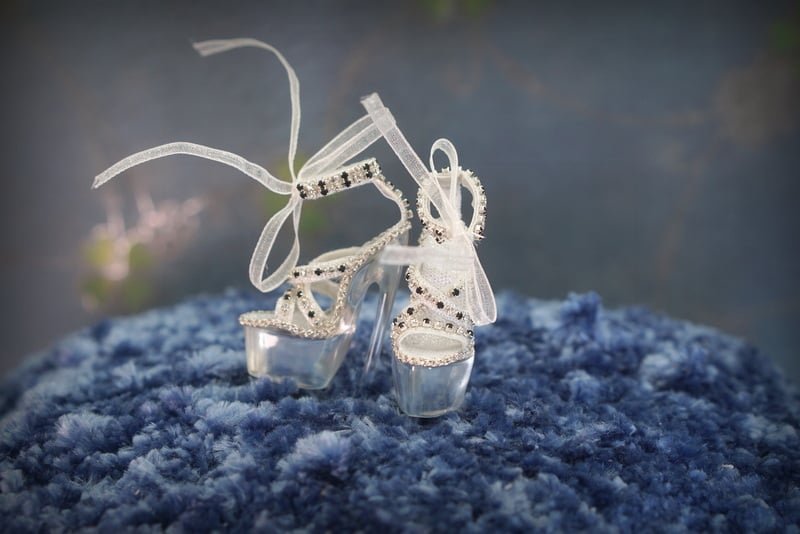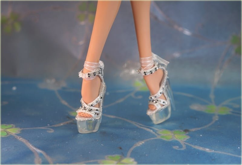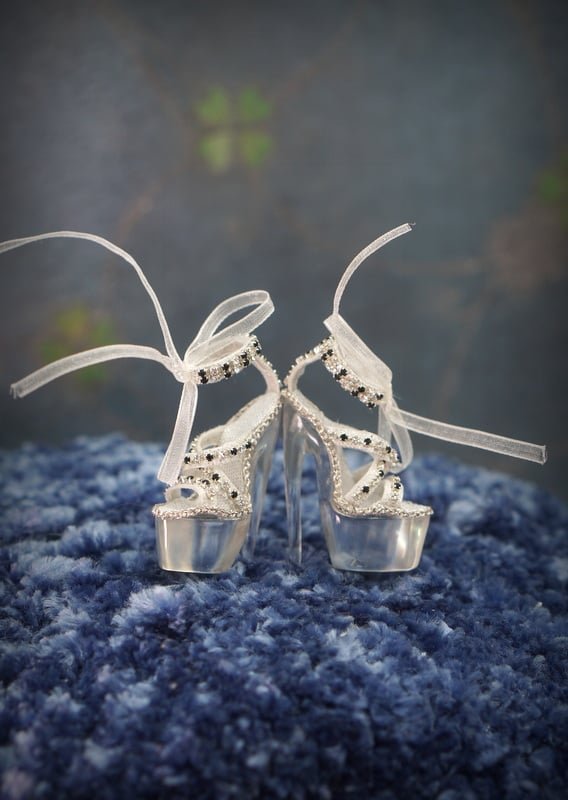 This is a special pair of shoes created for only KD girls that come with extreme high arch feet who are ready to wear super high heel shoes. The shoes are beautifully adorned with lace scraps, sequins and various bead embroidery, to create an exceptional beauty for their feet. This pair of shoes will also be a part of enhancing the luxurious elegance of her lavish outfit.