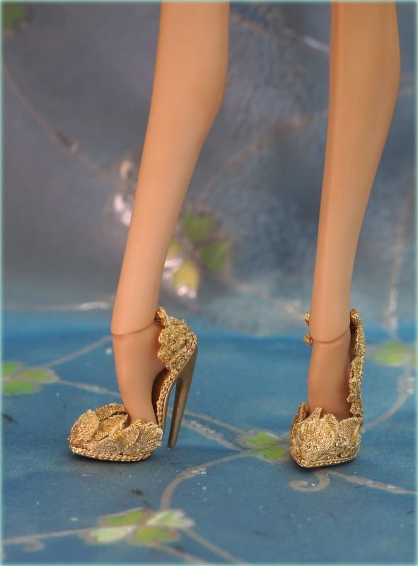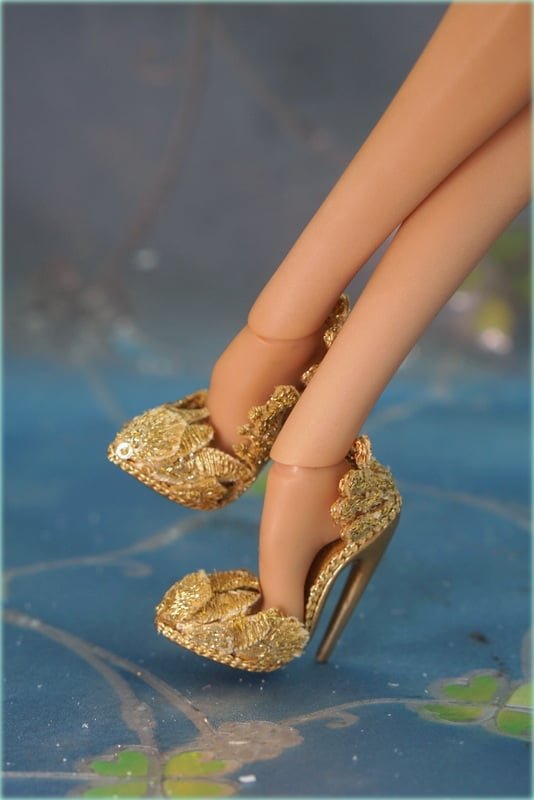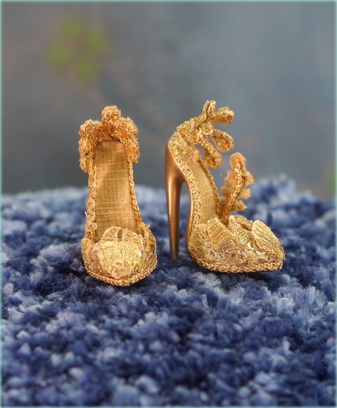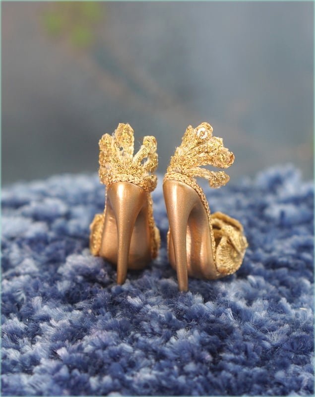 This is a special pair of shoes created for only KD girls that come with extreme high arch feet who are ready to wear super high heel shoes. The shoes are beautifully adorned with lace scraps, sequins and various bead embroidery, to create an exceptional beauty for their feet. This pair of shoes will also be a part of enhancing the luxurious elegance of her lavish outfit.
